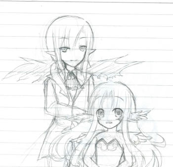 ←がヴァンデル→がシェミル。多分恋人関係…のはず、いや夫婦にしてたかなぁ…。