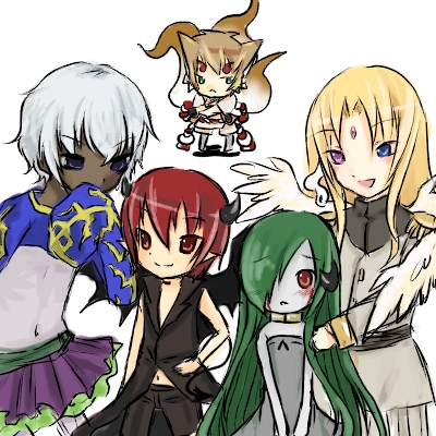 ←からエンジュ・チェザー・アトル・ゼナグス。一番後ろのちっちゃいのが赤尾君です。